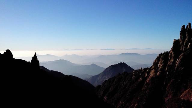 而观佛光最佳处是玉京峰,紫烟石,龙虎殿,需要阳光折射在云层上现出七彩,我曾记得一位曾二十多次上黄山追佛光的超级光迷还曾专门出过佛光系列的画册!这要看缘分了可遇不可求,最好是云层里有点水汽光线角度也正好时就出现了但一般时间都较短的,等不到嘛就自己站位在阳光投射到云层的路线中看看运气了(真有自己影像的七彩光环照片如拍出来也绝对难得!)