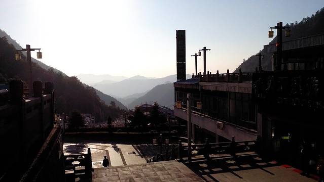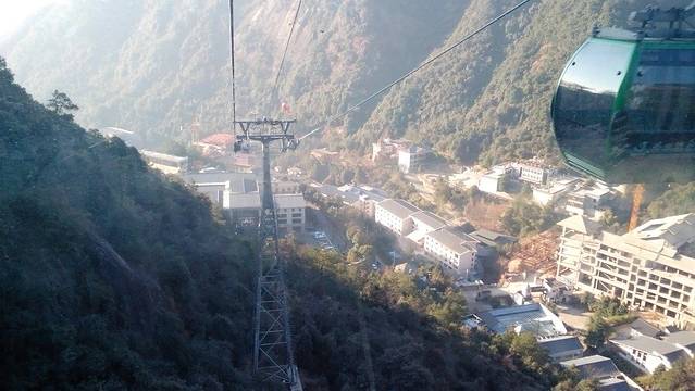 出门右面上去两三分钟就到台阶下的游客服务中心了,正好还没下班关门,结果索道售票的说要凭门票来买,售门票的窗口开始里面没人,后来右面房间出来个中年微胖女走进去,说不能提前买门票,一定要当天来买,什么奇怪规定啊?!一个男导游此时好像来为团客补张票也跟我解释了一句说帅哥,是只能当天买票的,这不是人为制造当天拥挤嘛!没办法,本来想今天买好门票和索道票明天可以直接上山的计划落空!唉,丢下了一句“怎么这么奇怪的规定!”悻悻然走回客栈,经过索道厅再看拍了时刻表,周一到周五8点-17点,周六周日7:30-17点。而之前其实我打过电话来问,一女的回答我索道16:30结束,你懂的,人家想早下班啊,说明她不是很热爱这份工作心里不情愿等到最后一分钟!