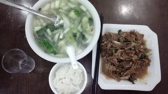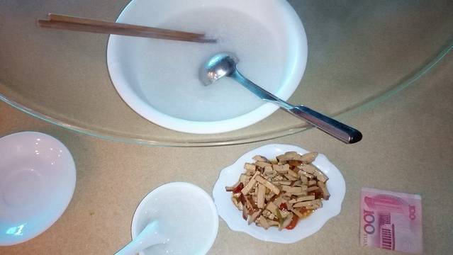 洗澡后16:30沿6路来时路线走到新建路上吃的晚饭,是称分量的有趣,店里正好在放中央台新闻频道外滩踩踏事故追踪报道看了一会也向店主介绍了下外滩(你看看我写的电影和人文建筑上海游记就知道我收集看过多少外滩老建筑资料故事)的情况,她们家读书的女儿聚精会神地听我侃...