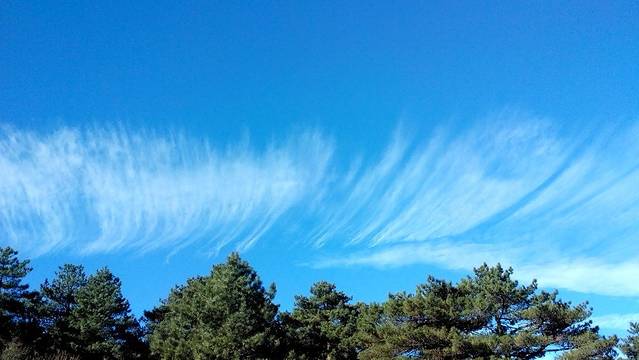 继续往前走站道中仰拍这羽毛状云时,迎面过来的女孩微笑看我然后也回头看我拍天空中啥东西?!看到后也和同伴感慨好漂亮的云啊