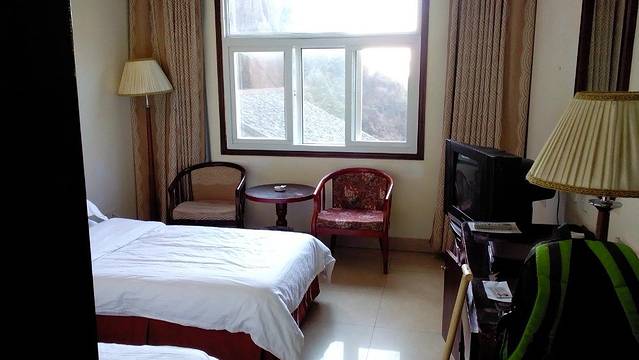 前台说我来得挺早的嘛,我说昨晚就住山下索道边啊,她朝我笑笑就一个人住?登记了身份证交了两百押金,服务态度还是挺和善的,天门山庄门前也有个小吃亭第二天早上看到还有人帐篷搭旁边,房间进去感觉还是不错的,就是只通风系统没空调的,因为规定山上不能装空调,洗澡热水晚六点到早八点应该是山上仅有五家宾馆里时间供应最长的,我最看中的就它这个好处,怕自己回来晚汗身没法洗澡多难过啊,床上有电热毯,窗口正对山谷美啊!山庄客房数量不少,分几处小楼,餐厅在二楼,我的房间有wifi,问服务台女房间有否wifi她要知道你房间位置才能回答你说明有的房间可能没wifi。