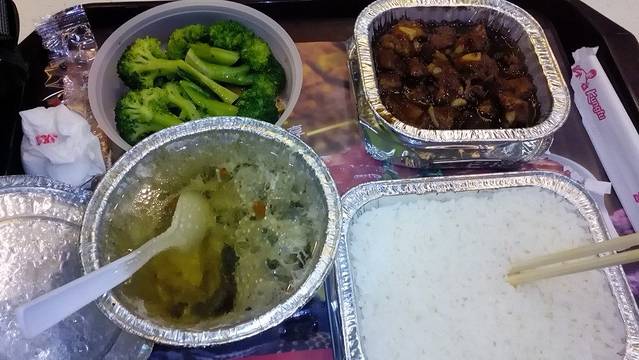 12:18准点到虹桥火车站,之前近看两架飞机先后凌空而上觉得速度好慢啊,虽然车上吃过面包橘子,但再吃顿正经中饭吧,真功夫招牌香汁排骨饭36元地铁内进门的,旁边女说香菇套餐咸,我这还可以啊,蒸的汤挺好喝的也不油...
