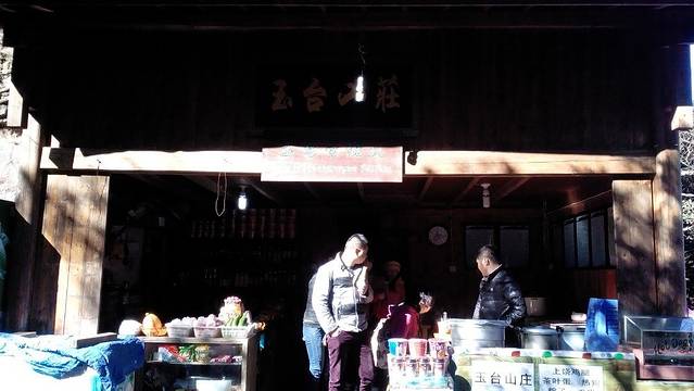 下去后路左边还有吃菜的禹皇顶饭庄, 经过饭庄时看里面吃饭人不少元旦关系吧