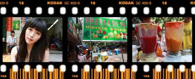 新民路有很多家鲜榨果汁的摊位.各种口味的鲜榨果汁和炒冰,都很好吃哦.个人比较喜欢芒果加椰汁的.果汁不如炒冰好吃呢..价格很平民化,4元一杯.在北京不管在哪家饭店点个鲜榨果汁最少都要25块吧...嘻嘻.我爱果汁.