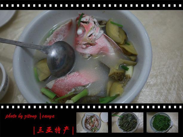 经当地的一位朋友介绍去吃了当地的家常菜.可能是地域的关系,我觉得味道比较清淡,嘻嘻...不过那个大眼鱼真是不错呢.这个鱼俗称大眼鱼,具体学名叫什么不清楚.这个汤叫:酸瓜大眼鱼汤.里面的酸瓜是当地的一种长不大,有些酸酸甜甜的瓜.整个汤里都有酸甜的味道呢.很鲜,鱼肉也很嫩.还要了一个鱿鱼,味道还不错.要了三个青菜.其中一个是莲藕的下面那根梗.竟然可以炒菜吃.还有个细长的野菜.味道跟一般青菜差不多.