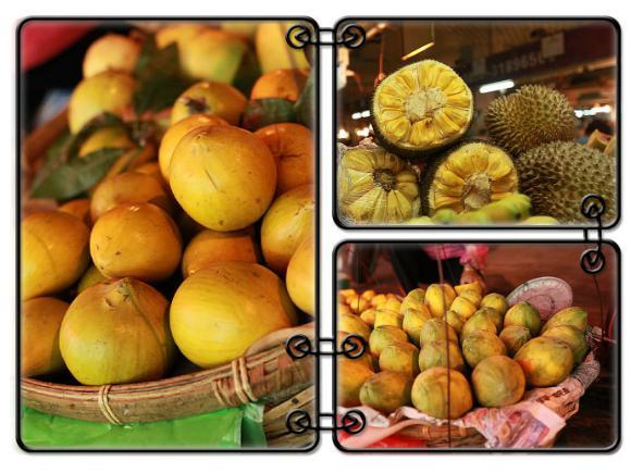 第一市场的水果虽然没有外面那些挑着扁担卖水果的便宜,但最起码重量不会亏那么多.外面的小商小贩价格是很低廉,但是重量就不能保证了.热带水果很多,我都爱吃哦.平时在大陆卖的比较贵的大约30块左右一斤的菠萝蜜,在这边只要5,6元一斤.虽然这里都是带皮一起,但是整体下来还是便宜太多呢.我的最爱.还有凤梨,均价14元一斤.各家价格不一.杨桃路边摊要2元一斤,市场内4,5元一斤.说实话,味道吃起来差不多呢.澳芒均价20元一斤.还有女人最爱的木瓜,小商贩基本10元给5,6个.很好吃.还有味道和样子很像鸡蛋的鸡蛋果.吃起来面面的.像鸡蛋黄一样.4元一斤.山竹就卖的相对来说比较贵了,10元一斤吧.