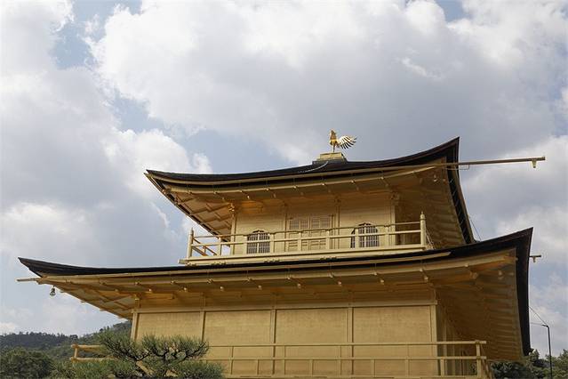 从龙安寺出来,向东稍走一段就有市营巴士的车站,坐两站到金阁寺前就可以到达金阁寺。话说金阁寺那叫一个人多,跟龙安寺一样也有很多修学旅行的学生。