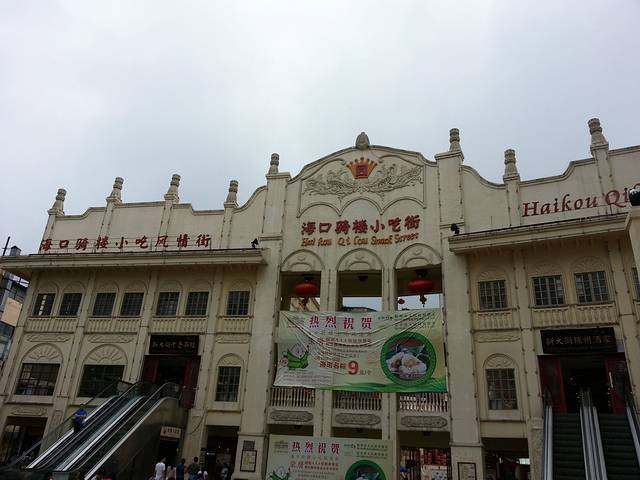 海口的骑楼,集中在中山路附近一带。与广东福建一样,吸收南洋、西方的建筑优点,而海口的骑楼的天际线却比上述地方融入了更多曲线元素,使这一区的天际线独具特色。 水巷口街是地道美食所在。