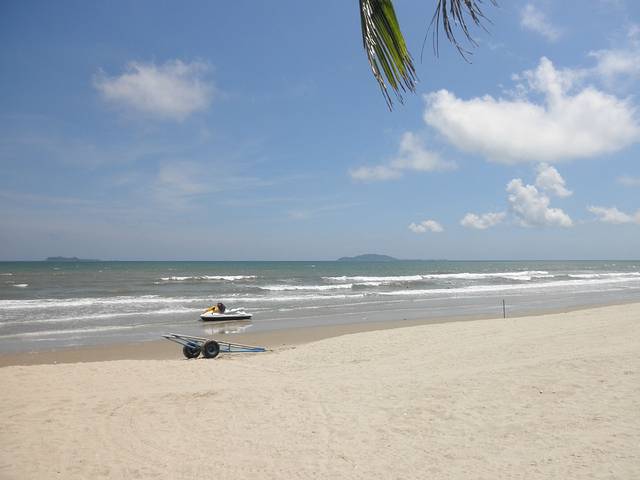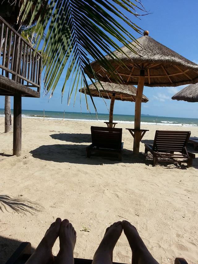 汽车总站坐8路公交直达公交站名叫三亚度假村,海虹路口,再往西就属于海坡区了。有马尔代夫的味道,远离市区,因而水质较好。
