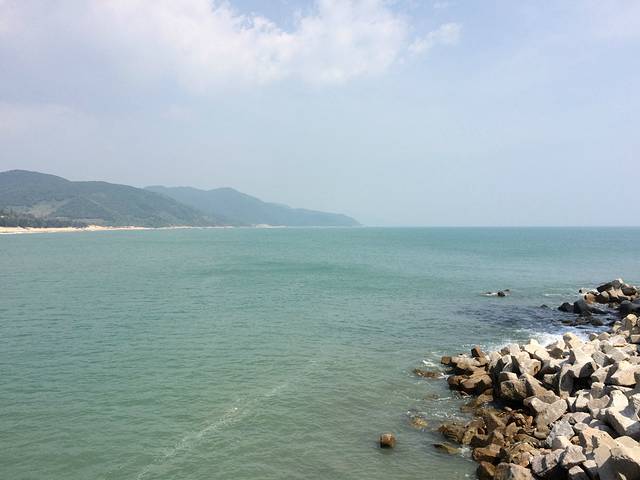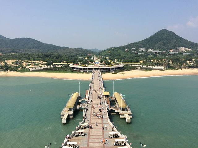 讲解了后我们就随着人群向前行。到了大桥上,哇,我和老妈都发出一声惊叹,海好蓝,沙好白,一望无垠,漂亮干净。和我们住的三亚湾真是两个概念,我突然觉得我后面两天不应该在三亚湾住着,也许去网上传言的亚龙湾呀,大东海呀,蜈支洲岛呀住着才会看到和这里一样洁白蔚蓝的干净的大海,三亚湾毕竟开发得太早了。