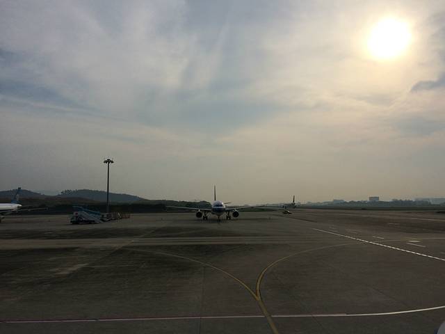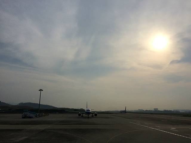 找到南航的前台,4号,从轻轨出来坐电梯进入机场,向右走了许久,才到。自助换取登机牌,服务员建议去柜台换,左边是柜台,右边是打发票的,先就走错了。过去正好没人,递了身份证和户口本,换号登机牌,顺便把行李箱给托运了。换登机牌的人挺好的,直接把我们三个位置选在一起,其中自然就有靠窗的,嗯,相当的体贴。后来才发现是最后一排,机尾了,晕!