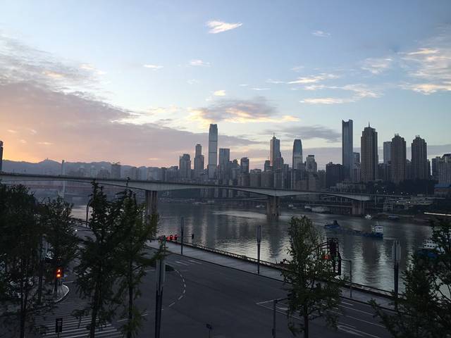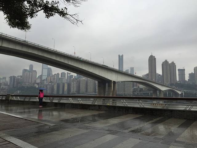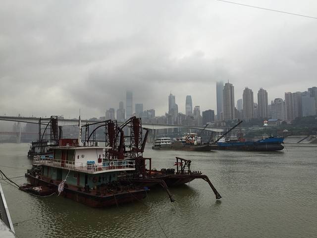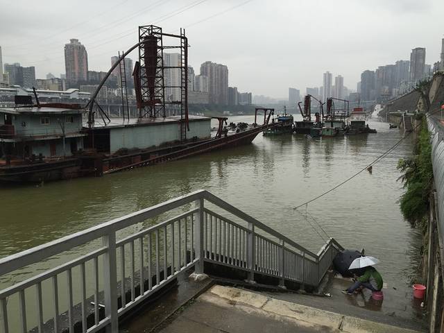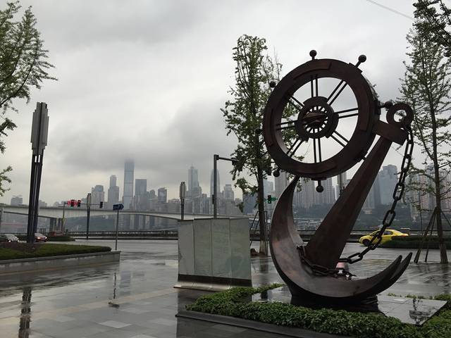 雨,莎莎的细雨,若不是照相怕淋坏手机、相机,我真的想不打伞漫步街头,雨水把路面打的油光放量,楼宇墙体滋润清新,雨中、薄雾下的重庆有了灵气。我漫步在北滨路的滨江栈道,独赏清晨雨中的嘉陵江,远望莎莎细雨中的中央cbd,座座高楼时隐时现,江中挖沙船一如往常的机械运转,岸边2、3位垂钓者放钩忙碌,一对小情侣亲亲我我,我不断的问自己,这是黄金周吗,这是重庆江边吗?姊妹们一再让我晒晒堵游的照片,看到我晒的安静惬意的美照,都要组团来重庆拍旗袍了,哈哈,关键是选择,加1分。