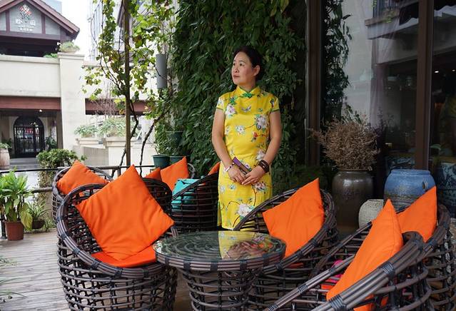 还好走时带了件旗袍,我先摄探路了。小雨中,我选择泓嘉码头艺术街区的廊下,安放好相机,选择位置,拍摄了旗袍靓照,游玩两天,疲惫倦怠,又是早晨,刚从雅顾学的知识 ,明星的最佳上镜时间16点以后。嘿嘿,精神状态不佳,伙伴们,以看环境为主,环境人像、环境人像啊!