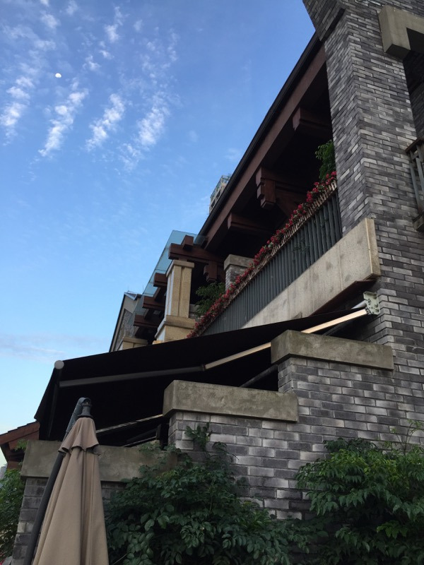 南滨公园人不少,又是晚上,沿着小径走了一小段,我们就到对面的渝风堂,好不容易来一趟,总不能光吃串串啊,已是20:40分,饭店仅剩2桌客人,就要打烊,我们两人占了露台上的一张大桌子,面对长江的灯火阑珊,点了花椒鸡、西红柿牛腩、这样的环境、位置、风景、饭店档次,仅用200元,而且菜品的色香味巨好,加3分。重庆消费真的不高,高档饭店不坑人,亲们啊,农家乐并不便宜啊。