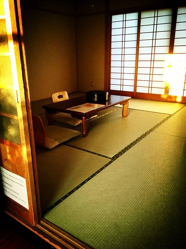预定的日式客房,阳光透过木窗投射进来,暖暖的,美美的。