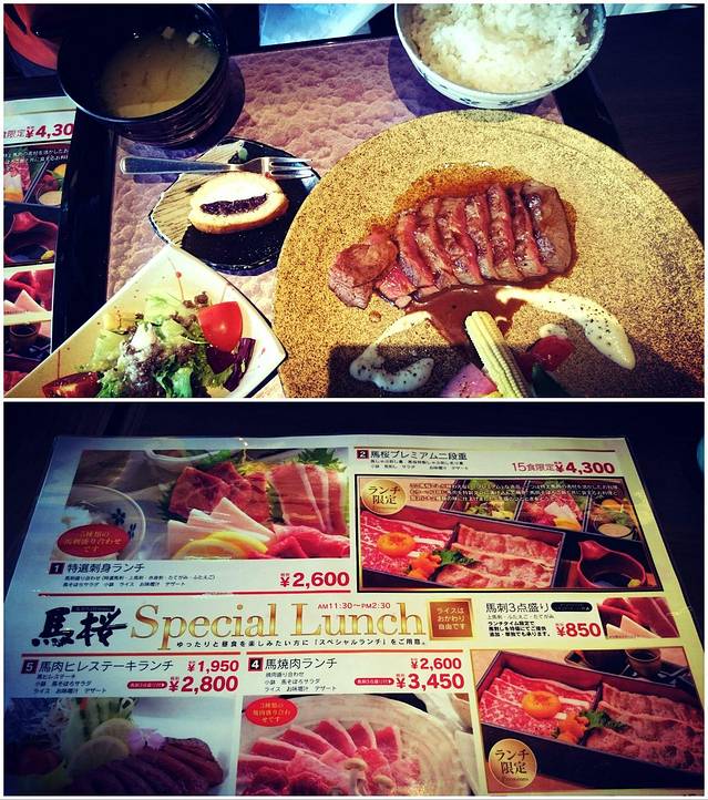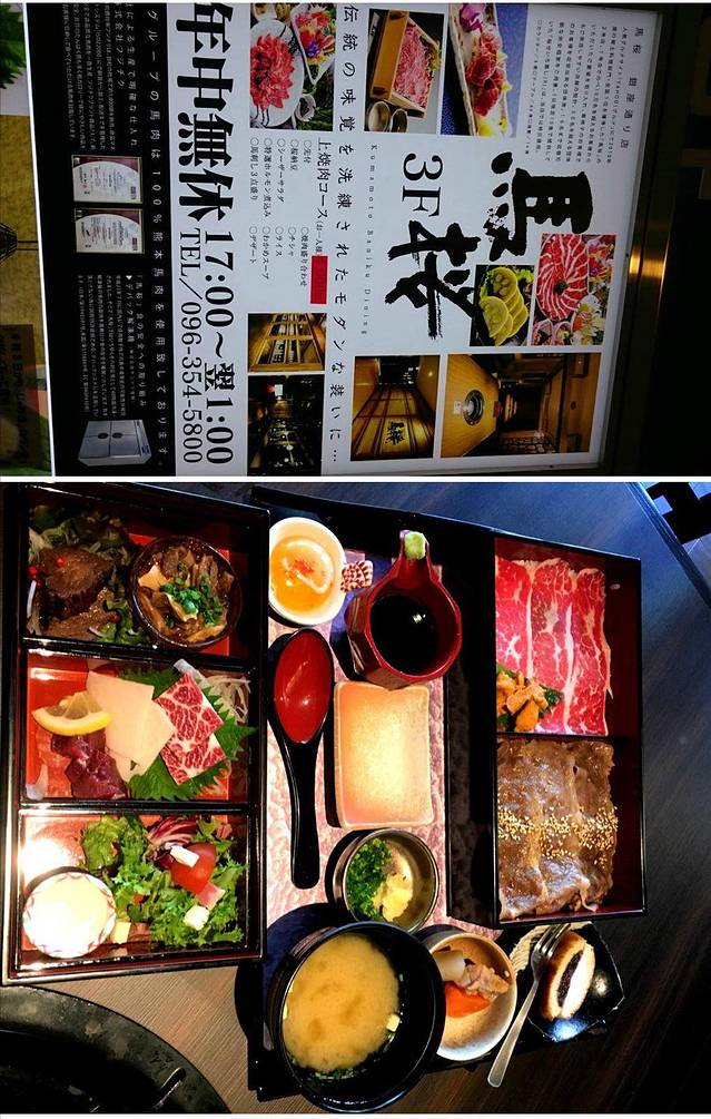 熊本城离上下通只有一路站,可以步行。熊本马肉料理的极品店家有两家,分别是菅乃屋和这家马桜了。头一日预约好今日中午,午餐的价格比晚餐的便宜,推荐这个时段来吃,但好像只有周末开中午时段,其余都只有晚上营业。