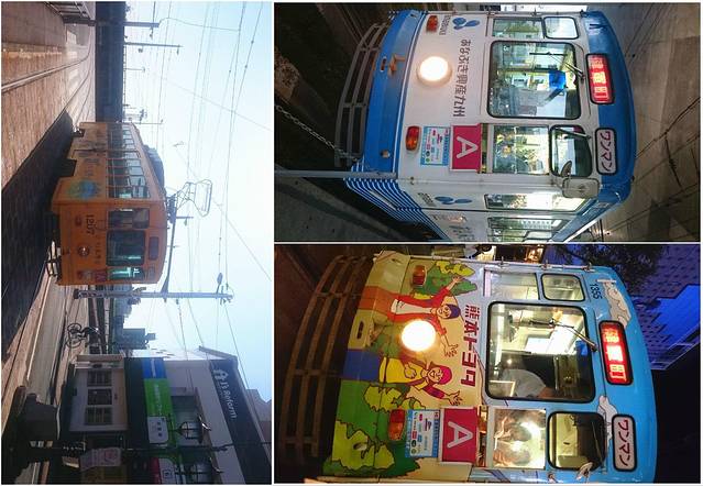 熊本没有地铁,最方便的就是轨道电车和公交巴士。复古的电车和北海道的很像,车身都被各种涂画覆盖,基本找不到两辆相同的电车。