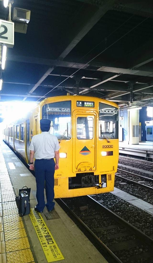 离开由布院,出发熊本。在由布院车站看到这奇特车身的火车,创意十足。