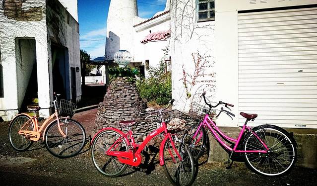 由布院半日游,骑上自行车出发。一路上看着湛蓝的天,油绿的青山,多彩的野花,骑在宁静的乡间小道上,呼吸着清新的空气,幸福感满满,好喜欢这里。