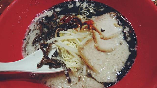 一風堂开业于1985年(ps:很荣幸,我们仨与它同岁)。看那泛着油花的汤底,就知道它一定不简单,猪骨汤十分浓郁,满满肉香,搭配着口感略韧的面条和清爽豆芽木耳,感觉不会太腻,还有那肉汁丰富的豚肉,更是让一碗普通的拉面增味不少,吃完让人唇齿留香。当然,温泉蛋也绝对不能少,它与拉面简直绝配。