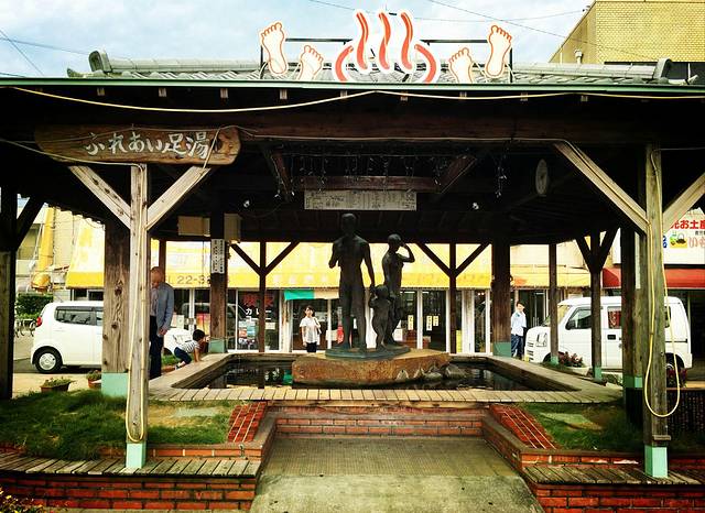指宿站旁的足汤小亭,候车时可以在此歇歇脚,很是惬意。