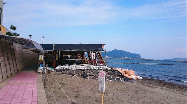 指宿砂砾会馆 “天然砂蒸汽” 。由于指宿及其所处的鹿儿岛都是活火山的活跃地区,火山除了造就温泉以外,还令指宿的湾岸常年涌出六十摄氏度至八十摄氏度的地下水。地下水流经沙滩,这就形成了又热又烫的热砂。