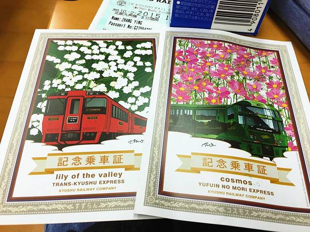 九州观光火车上,都会有这样纪念乘车证,可以在背面空白处盖上专属印章,用作留念。