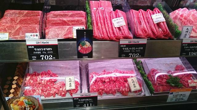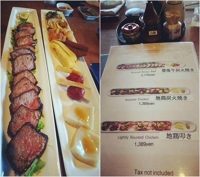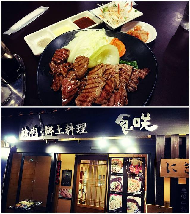 离开由布院前又来一发。就在昨天那家的隔壁,也是家烧肉店。豐後牛炭火烧き,昨晚吃的也是叫这个名字。百度一下,原来“豐後牛”属于“黑毛和牛”。在日本国产牛肉中,称为“和牛”的牛肉品种主要是“黑毛和种”、“褐毛和种”、“日本短角种”、“无角和种”四种。其中,黑毛和牛肉质细致多汁,脂肪均匀分布在瘦肉间,看上去如同冬天降下的美丽霜雪,也称之为“霜降牛肉”,它被推崇为日本国宝级的食材。