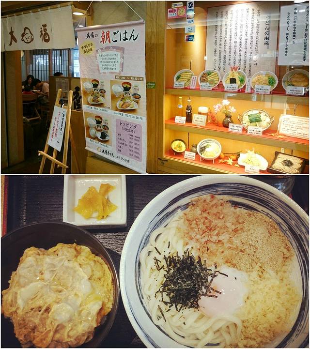 看着诱人的美食模型,让人口水连连。早餐定食包括亲子盖饭和乌冬面,一食两种类型,丰盛而满足。