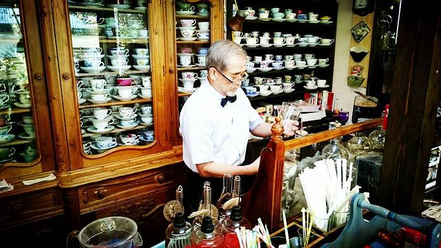 有那么一点宫崎骏feel的老爷爷正在烘煮咖啡,香气充满于整个咖啡馆