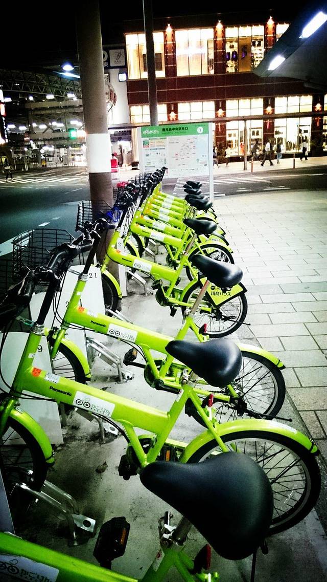 车站前自行车租赁点,我们这一样都是绿色呢。