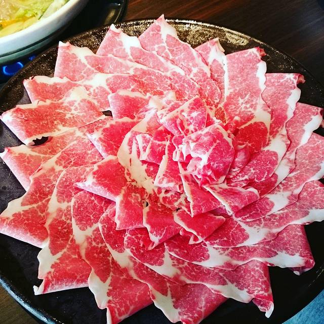 我们仨把马肉刺身,马肉烧肉,马肉寿喜锅都点了。生马肉由于肉色是美丽的粉红色,因此素有“樱花肉”之美誉。精选上等马肉,经过熟成后,马肉分布均匀的脂肪入口即化,鲜嫩口感无与伦比