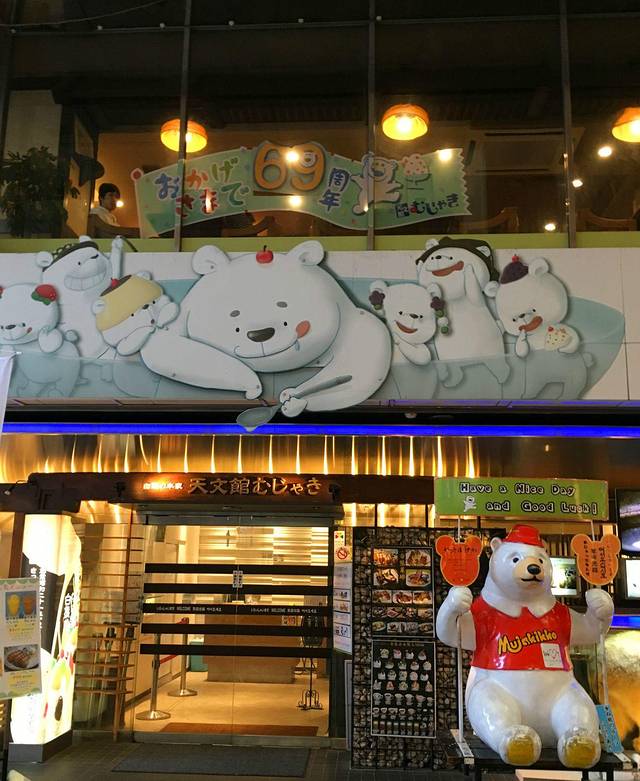 天文馆MUJYAKI是白熊刨冰的本店,店内有各种口味和尺寸的白熊刨冰。刚开始我们仨都说不饿,不是很有食欲,但一下勺,大家都停不下来了,不一会儿就见底了。刨冰与自制牛奶混合,软绵绵的冰沙入口即化,再加上新鲜水果,白芸豆等五彩缤纷的配料,口感层次相当丰富。