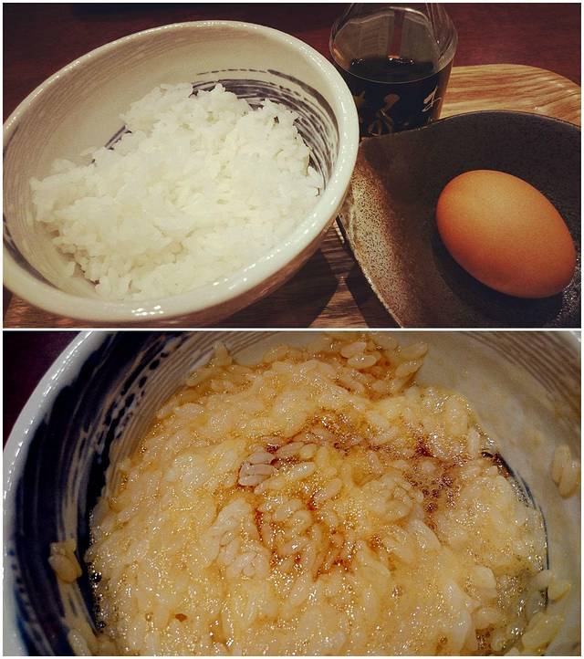 中午那碗拉面太实在,饱到晚上还没感觉饿,朋友点了套餐,我就给自己点了一碗白米饭和鸡蛋,深夜食堂的节奏妥妥的。