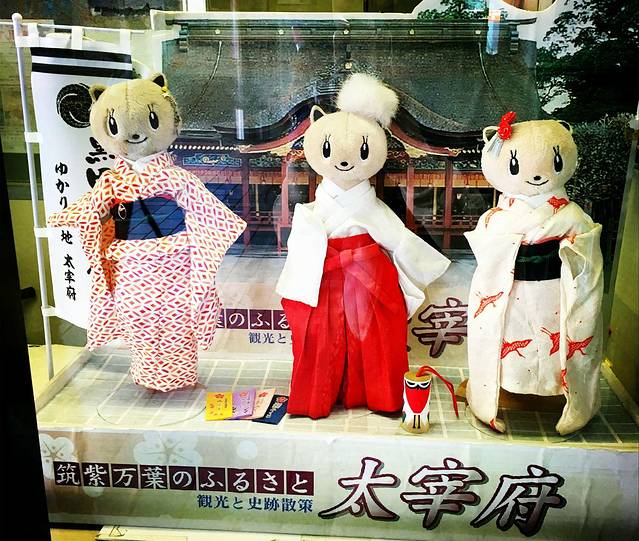 太宰府天满宫位,是在菅原道真的坟冢上建立的一座神社,与京都北野天满宫并列为日本全国天满宫的总本社。 通往太宰府天满宫的道路两旁聚集了许多卖特产的店,十分热闹。