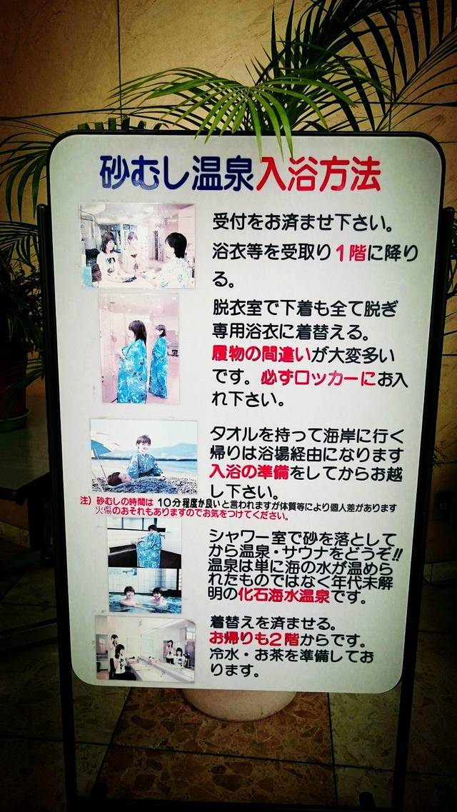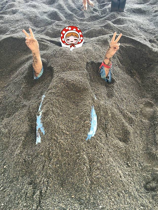 首先换上浴衣,去海岸边,工作人员会指导你躺下,把你用砂土埋起来就只剩个脑袋。10分钟后就可以去浴室,洗干净,并且泡个汤啥的。耐得住的也可以多坚持会。