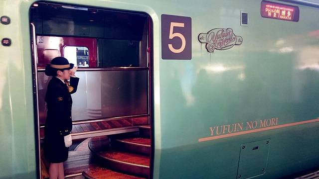 ゆふいんの森(Yufuin Nomori)是JR九州最有名、最受欢迎的观光特急列车之一,沿途优美的自然风光和它那苍绿色的车身交相呼应,显得分外和谐,车厢内使用原木铺设地板,温暖而显得古典,营造出森林别墅木屋般的气氛。车厢小卖店外专门准备了适合小朋友的火车制服,更有美女乘务员与你亲密合影