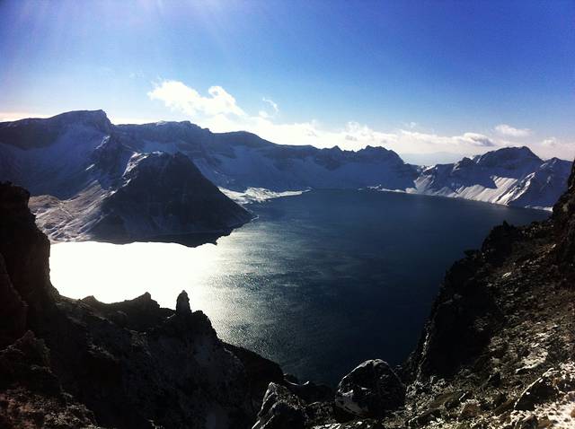 听其他游客说天池里面有个水怪,但是冬天是不会出现的!不过天池真的很美诶,特别是雪山环绕着你,活生生的一个冰雪公主的样子!
