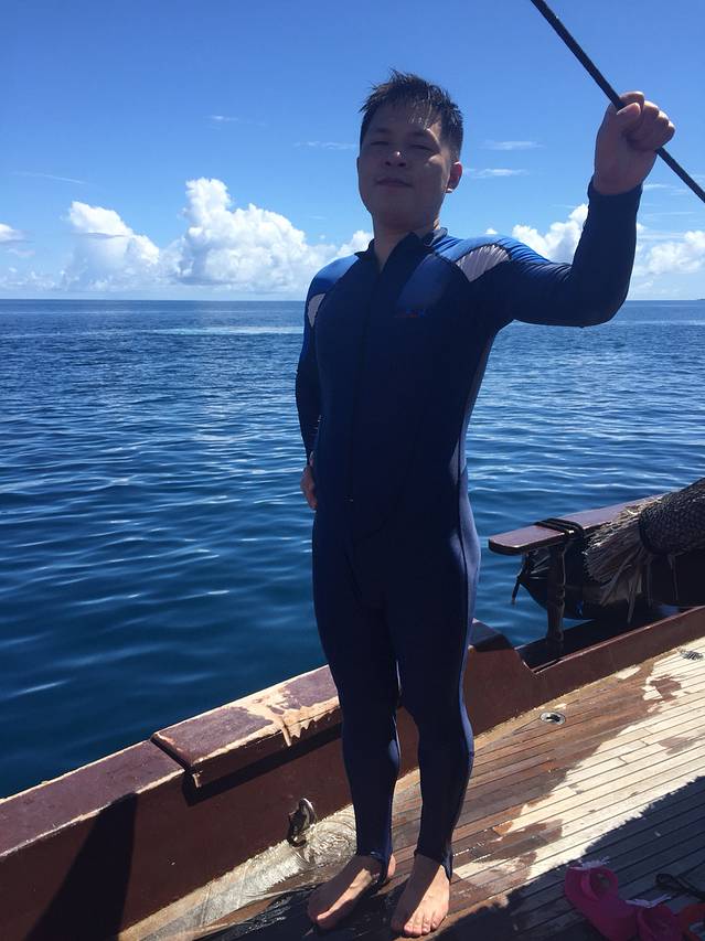 出海…别人都比基尼,我穿了潜水服……正确,不然晒成🐶了