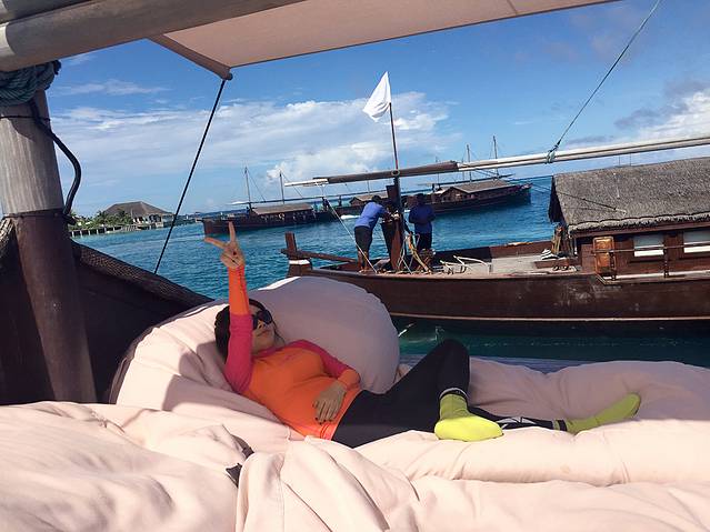 对于我水性不好的人来说萨芙莉的海滩真的很合适,在水屋就能潜水。我们刚开始选择的是4晚水屋,后来没房了就选择了2沙2水。沙屋也不错,没有蚊子。