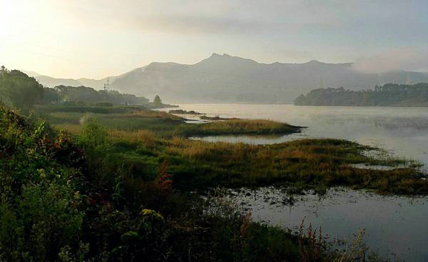 浑江边新建的沿江大道,清晨的风景很漂亮,是个散步和摄影的好去处。