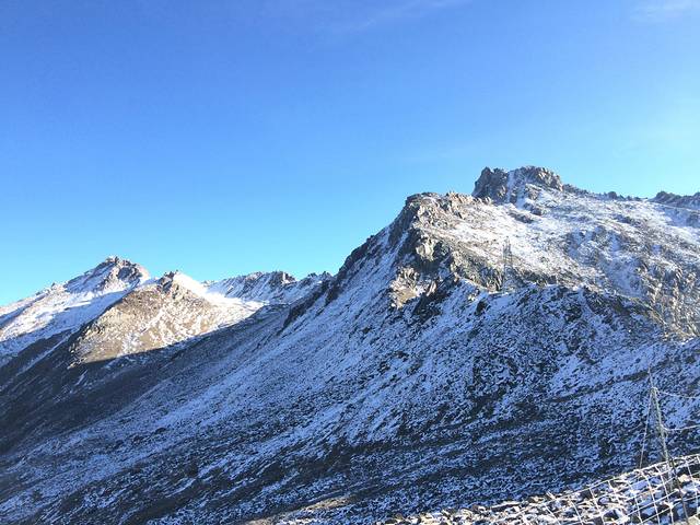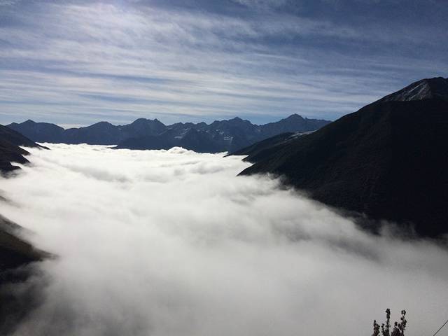 第4天一早6:30我们就坐巴士车向四姑娘山出发,历时6个小时颠簸崎岖的山路(中间大概有40公里的烂路,反正我是晕车了,建议出发前来颗晕车药,快到的时候就可以看到雪山和阿巴朗依云海了)后到达目的地日隆镇,下车后在路边小店吃个便饭,炒菜的,人均不超过25吧。然后往长坪村走,很近,那里是民宿和客栈的聚集地,我们在去哪儿预订了了黑帐篷青年旅社,床位35每人,我们四人间刚好。环境不错,床很软,推荐。这里海拔近4000米,10月份温度已接近0°,真的要备好足够的保暖衣物。接下来就可以出去周围逛逛,远远看看白雪皑皑的四姑娘山和阿巴朗依云海啦。