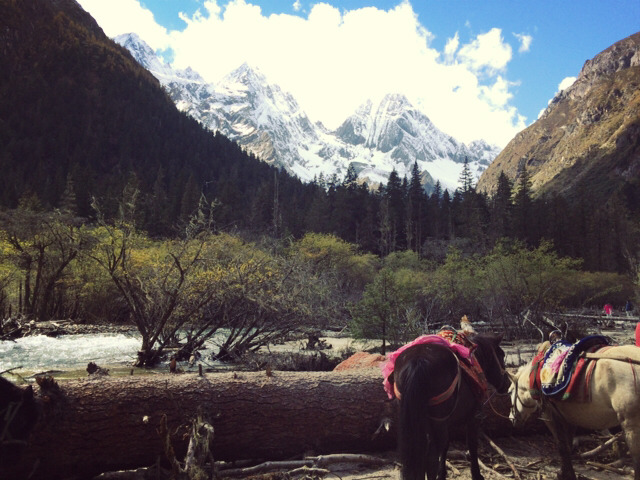 四姑娘山有3条沟,分别是长坪沟、双桥沟和海子沟。如果行程充足有时间建议3条沟都体验一下,每条沟都分别需要花上一整天的时间。我们这次因为时间问题只选择了长坪沟,总长30公里,需要买门票和观光车票,共计90元,学生票70就可以。在村口买到票后坐观光车到喇嘛寺,接下来你可以选择徒步或者骑马,徒步是栈道,风景也很不错,但据说没有骑马风景好,若是咬骑马,旺季价格打听了下到四姑娘山脚下来回要500大洋,我们这次徒步到一半才起的马到四姑娘山脚下再回到喇嘛寺,收了我们200元每人。回来才给的钱,这样确保不会半路被丢下哈。