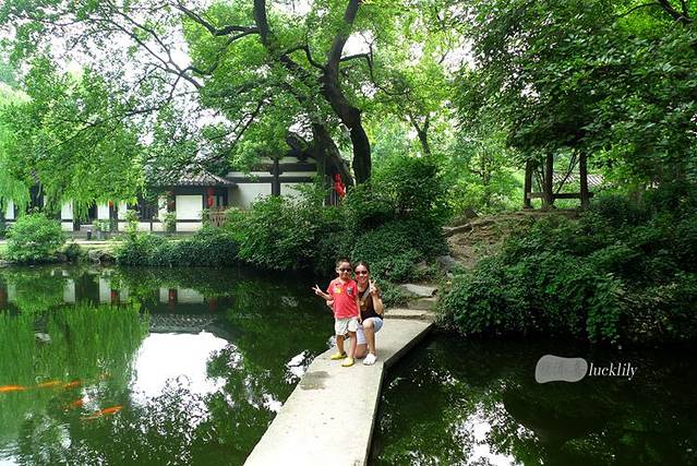 数年前我与小儿留影所在的廊桥处,正是沈园内的葫芦池,沈园内的山、水、亭、阁因为有了年代久远的承建史,所以每一处都颇具灵性,浑然天成般的引人入胜。