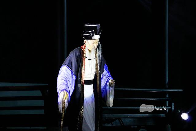 《沈园之夜》中,首先出场的是这沈园的后世的主人一位富贾员外,是这一场《沈园之夜》演出中贯穿始终的主线人物。其人物外形塑造和言辞的阐述略带恢谐,将这一场演出所演绎的爱情故事娓娓道来……