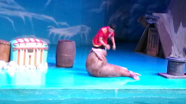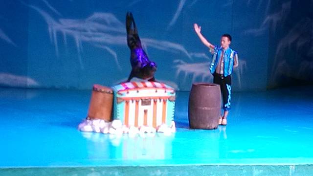 人太多,想认真看得东西还没有看完就被人挤一边去了。管理很乱,特别是售票处,设计的不合理、缺乏人性化。表演还不错,还有观众互动环节。观光的玻璃隧道很长,但是人太多