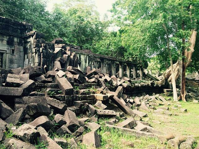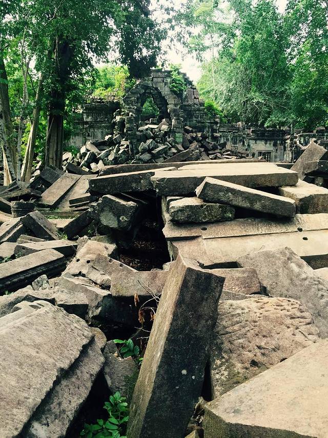 现在的小吴哥已经成为游客拥挤的喧嚣之地。要想体验吴哥窟未被发现前在丛林里沉睡的摸样,崩密列是大家推荐的地方。然而,在我们去的时候,很遗憾废墟内已经全部搭上了木道供游客通行。不能像以往一样在巨石阵里胡乱攀援探险了。只是所有建筑依然是保持原貌,除了一点加固,基本保持了原貌未加修葺。