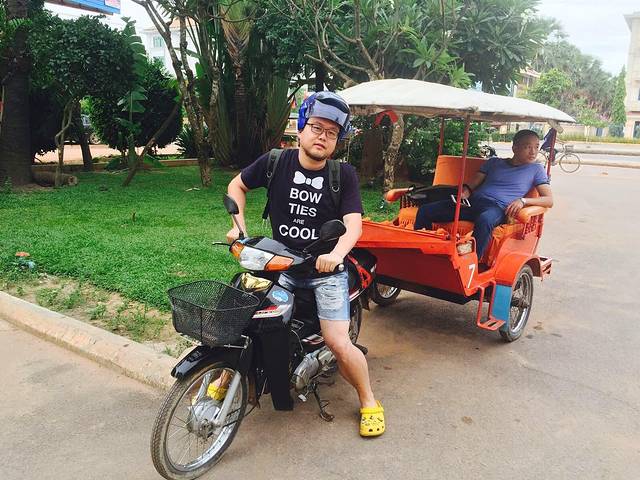 入住酒店后,租了当地最具特色的嘟嘟车到吴哥夜市闲逛,往返六美金,可搭乘4人左右!