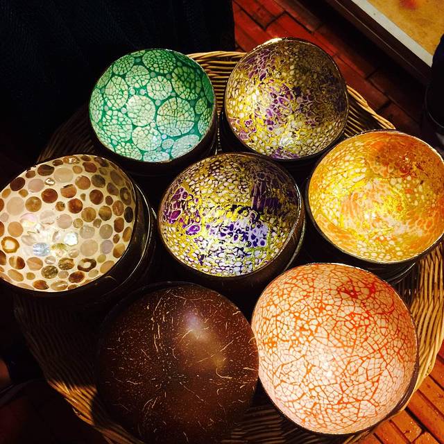椰子壳和贝壳做的工艺碗!