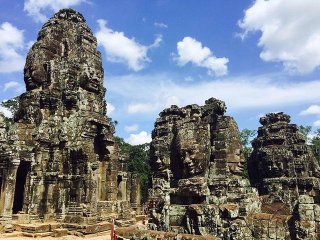 巴戎庙位于大吴哥城的中心位置,Bayon在高棉语里是“中央”的意思。巴戎庙是由一组共48座小宝塔围绕中央尖塔构成的建筑群
